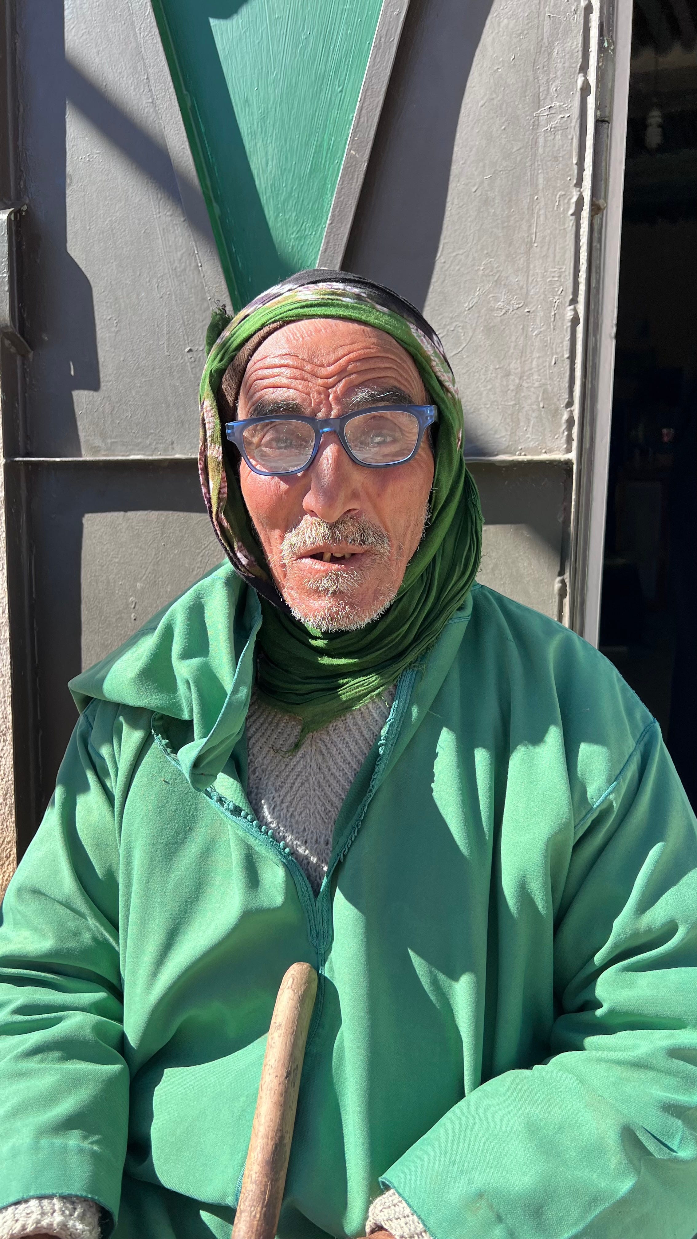 Ci fermiamo in questo negozietto minuscolo. Un uomo sui quarant’anni, seduto fuori a chiacchierare, ci accoglie. Parla un ottimo francese e ci spiega che lui è nato qui ma che abita in una delle grandi città del Marocco. Ogni volta che può torna a casa. È una persona gioviale e chiacchierona. Il proprietario del negozio non è lui ma il vecchietto seduto vicino. Parlarci è più complicato, conosce poche parole francesi e sembra un po’ malandato.